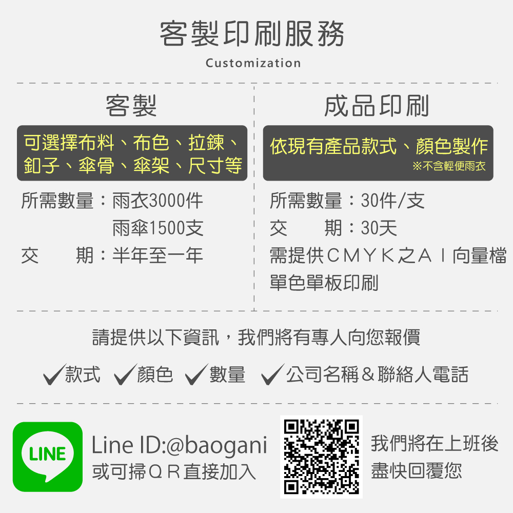兩件式雨衣/一件式雨衣/輕便雨衣,皆可印刷